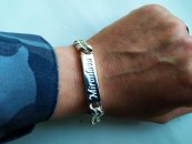 Долго искал место где могли бы сделать браслет по вкусу и цвету и честно говоря был удивлен когда мне предложили сделать браслет со своим шрифтом да ещё из двух сторон да и вдобавок с лакированным логотипом. Наверное единственный минус который я заметил браслете это то что когда его переворачиваешь надпись идёт вверх ногами с другой стороны а так в итоге прикопаться ни к чему за долгое ожидание а это полтора месяца сделали скидку, всем рекомендую данная кампания для любителей чего-то уникального