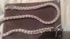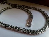 Full-fledged chain.Very popular among men «Ramses weaving», this weaving can also be seen on the Internet under the name «Double reverse Bismarck». Especially men's attention is attracted by thick silver chains of the weave «Double reverse Bismarck» with sizes close to the size in the photo. Nevertheless you can adjust almost any of parameters to your liking. There is also a choice of black or rhodium plated chains.