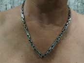 Full-fledged silver chain around the neck.